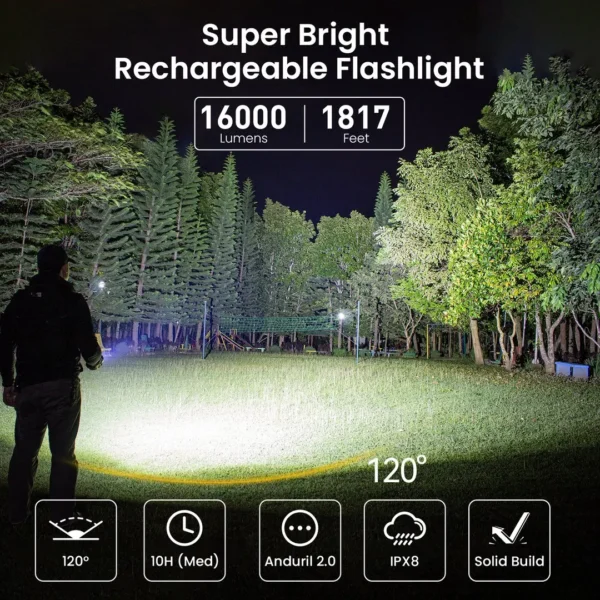 Sofirn SP36 Pro Anduril 4*SST40 Powerful 8000LM LED Flashlight USB-C Rechargeable 18650 Torch Super Bright Lantern