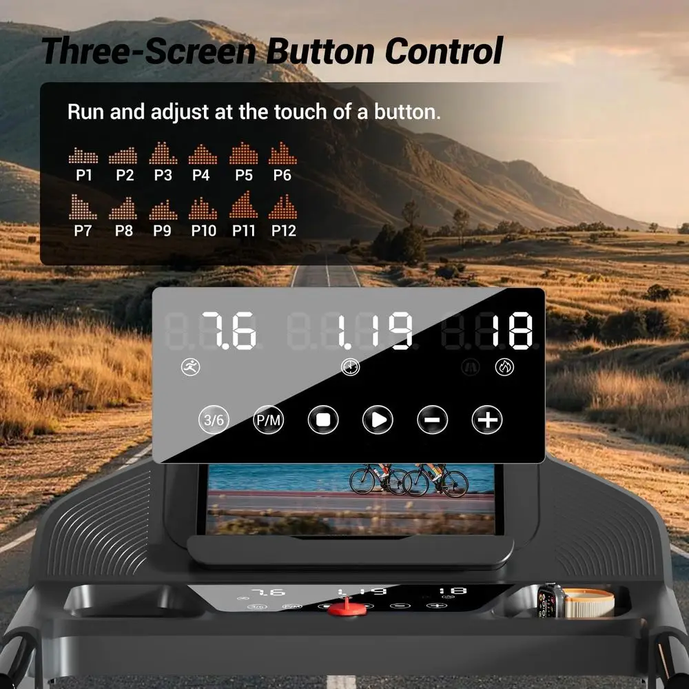 7-Layer Shock-Absorbing With a 7-layer non-slip surface, cushioning rubber pads, 6 silicone shock-absorbing and anti-slip handles, the treadmill effectively reduces joint impact force by over 50%, suitable for the whole family. Enjoy a comfortable running experience on the 15.0 x 37.5 running belt.