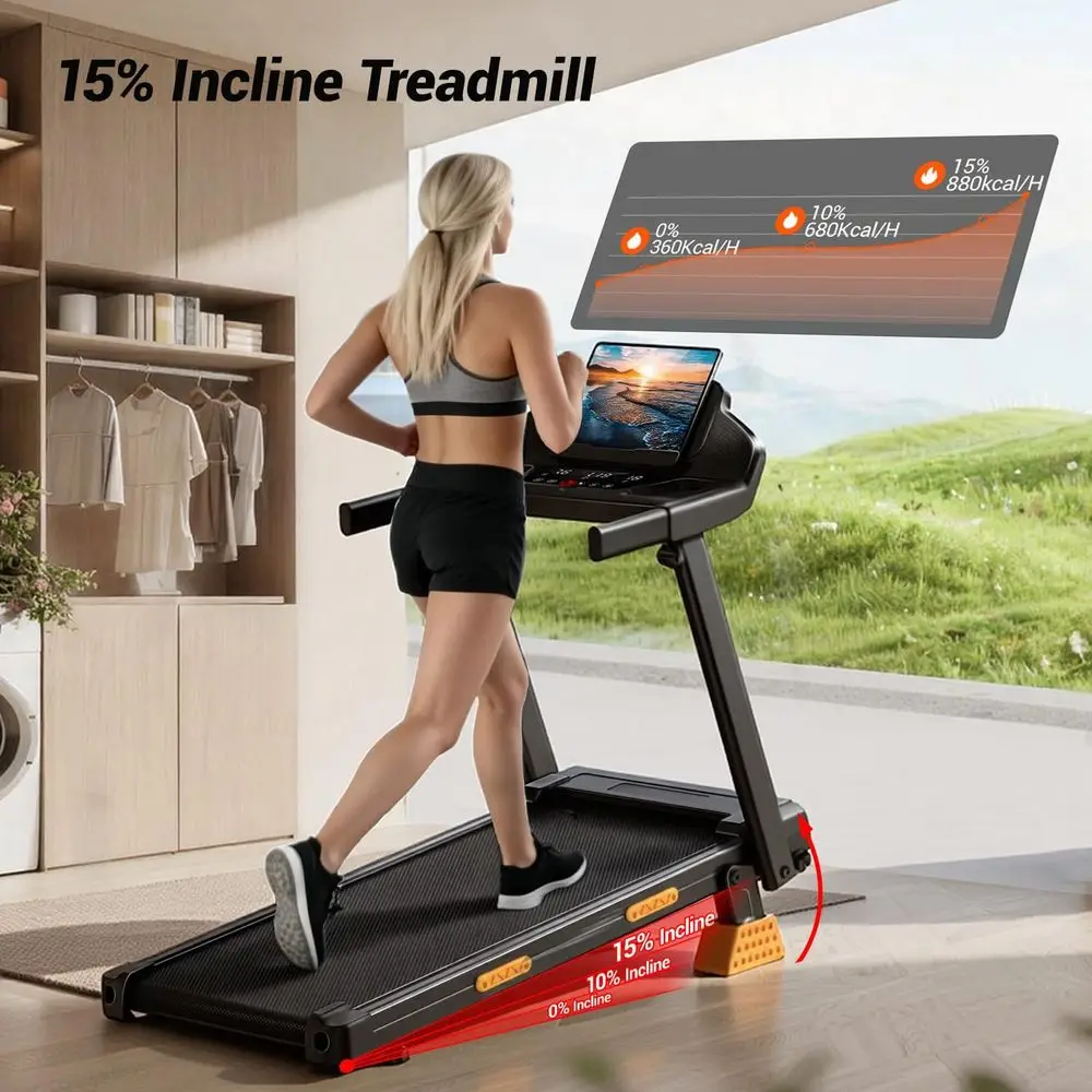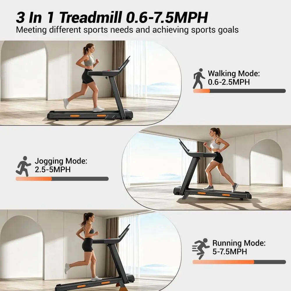 15% Incline 7-Layer Shock-Absorbing Treadmill, 3.0HP, 400lbs Capacity, 0.6-7.5MPH Speed