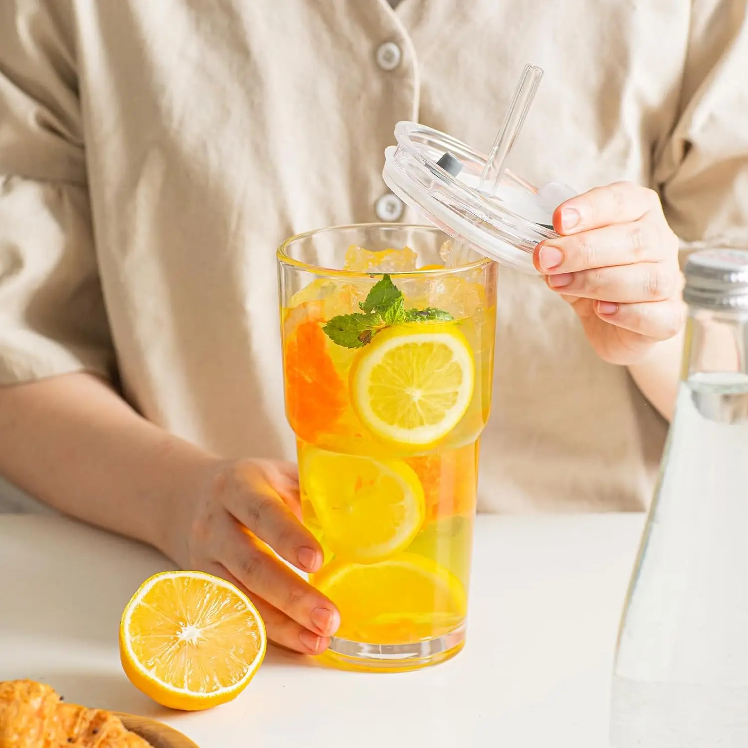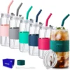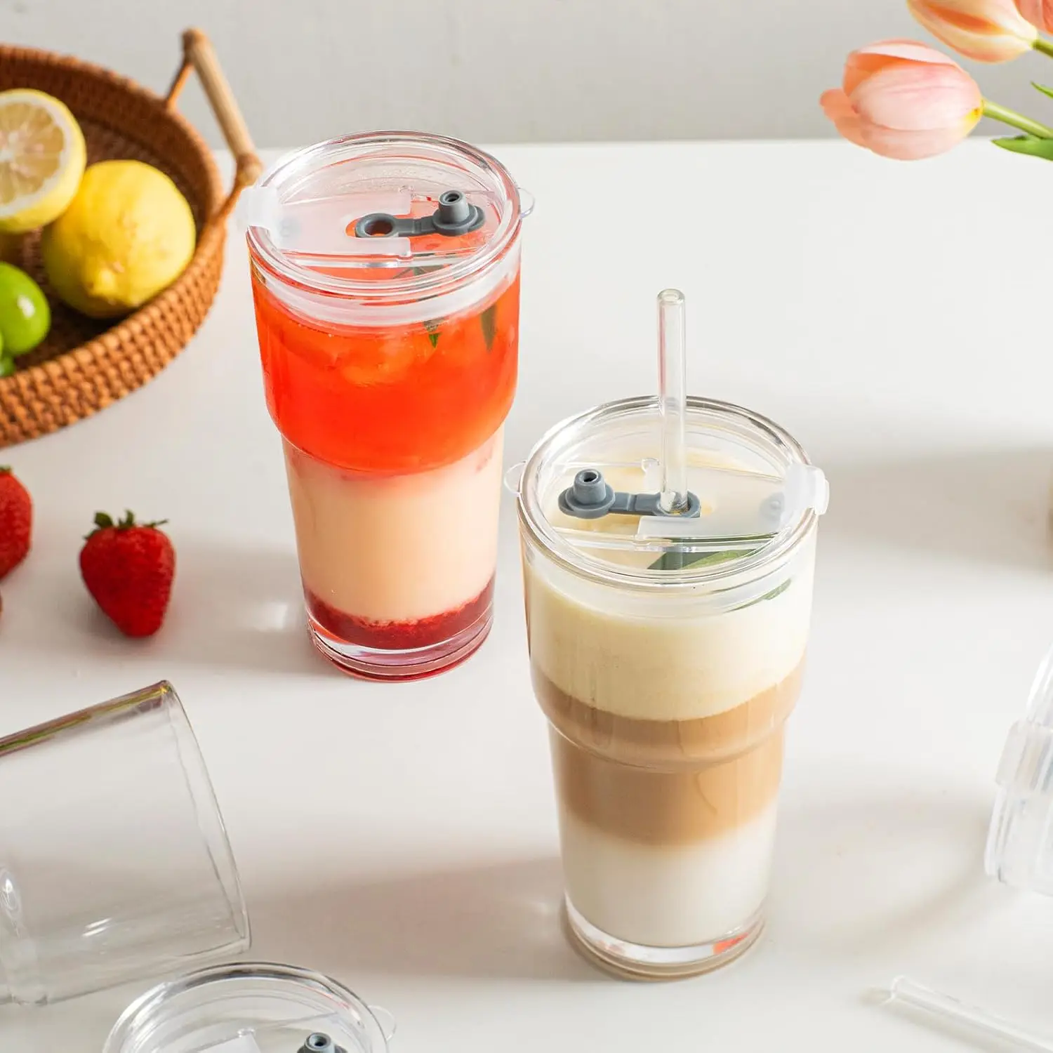[Sip with Happiness & Confidence] Each 20oz iced coffee cups come with a glass straw and a sealed lid. The upgraded silicone ring ensures a leak-proof fit, letting you relax and enjoy every drink—perfect for iced coffee, cocktails, milk, hot tea, juice, and any beverage you love.