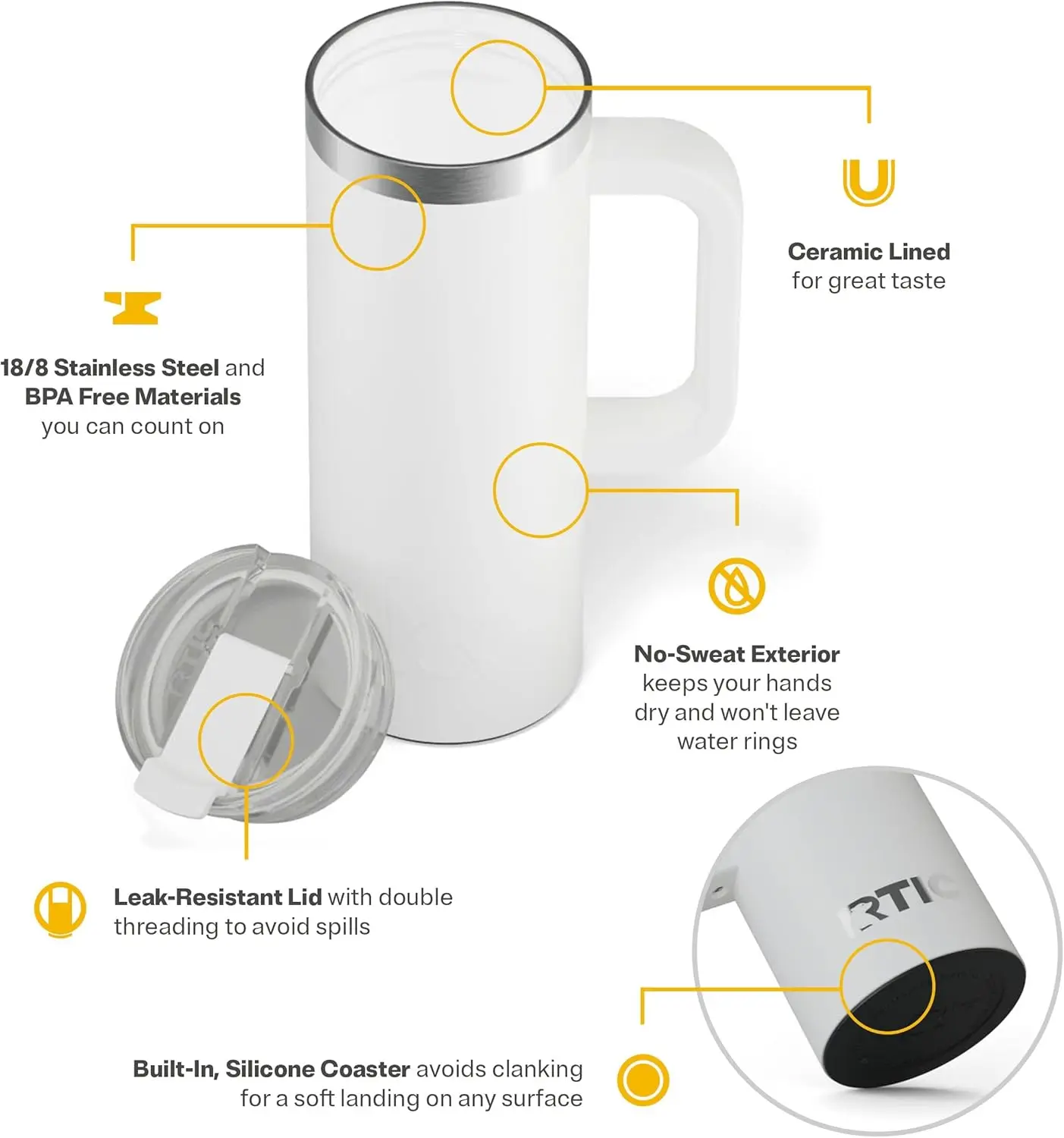 Special Feature:Ceramic Lined, Handle, Insulated, Leakproof, Silicone Base