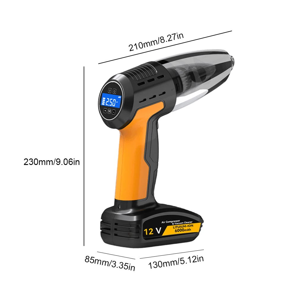 1. 4-in-1 Convenience: Our car vacuum cleaner is not just for cleaning; it’s a versatile tool that also serves as a tire inflator. With an integrated digital tire pressure gauge LCD for easy reading and an LED light to illuminate dark surroundings, it’s the perfect all-in-one portable device for maintaining your vehicle.