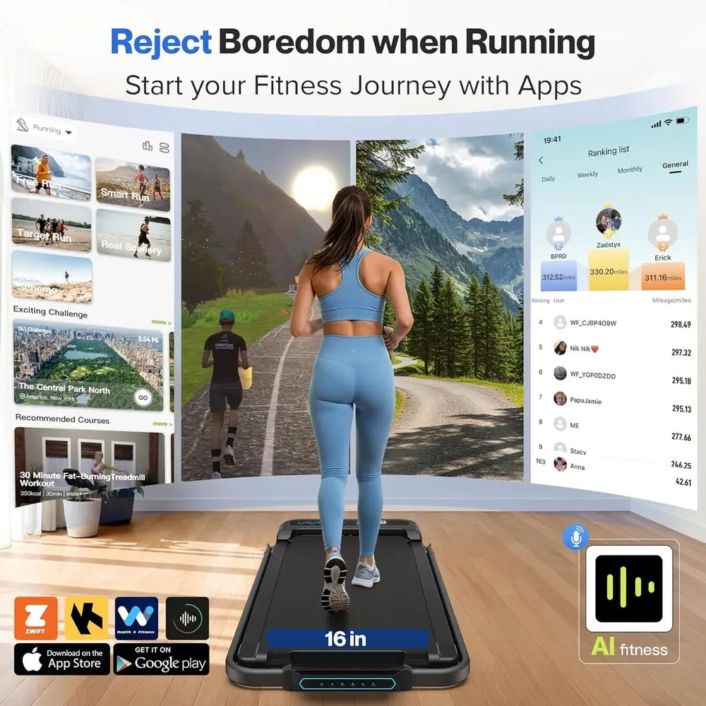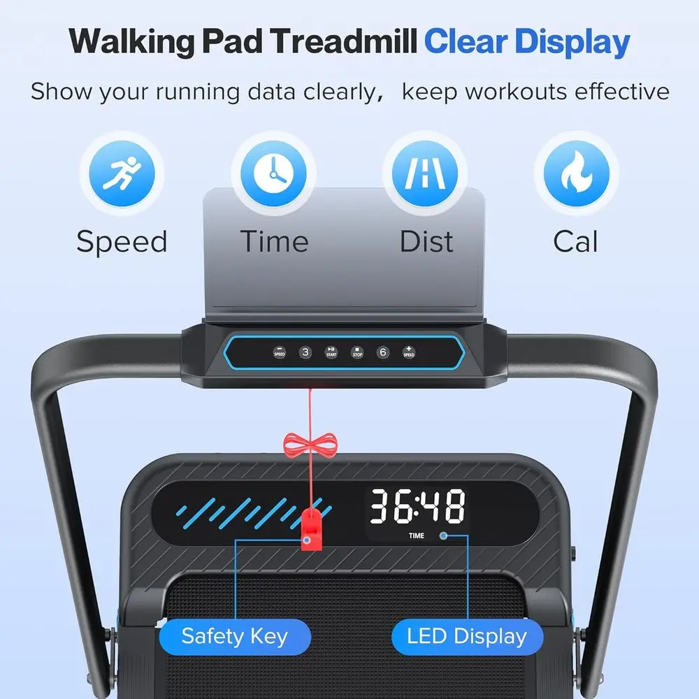 Recommended Uses or Product: Perfect for small spaces: This treadmill folds up in seconds. The wheeled design makes it easy to store under the sofa, under the bed, or in a room. From dorm rooms to small apartments, this treadmill is the ideal solution for small treadmill, mini treadmill, compact walking pad, or folding walking pad.