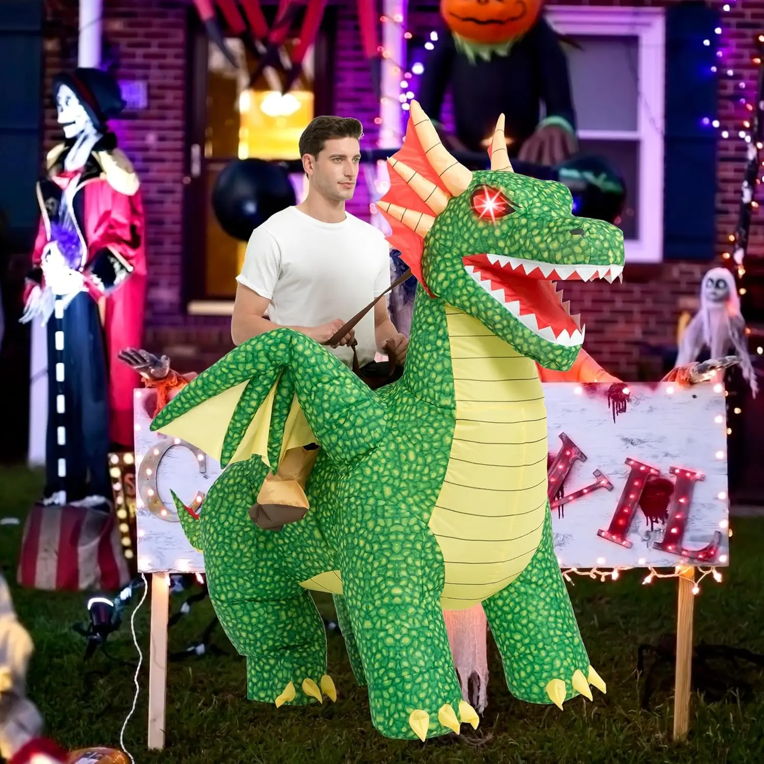 【Excellent Craftsmanship】 The dragon costumes for Halloween are made of high strength waterproof polyester which is against rips and tears, the excellent stitching improves the quality of the inflatable costumes. Moreover, our costumes are providing with a powerful-duty blower to continuous airflow inflate the costumes.