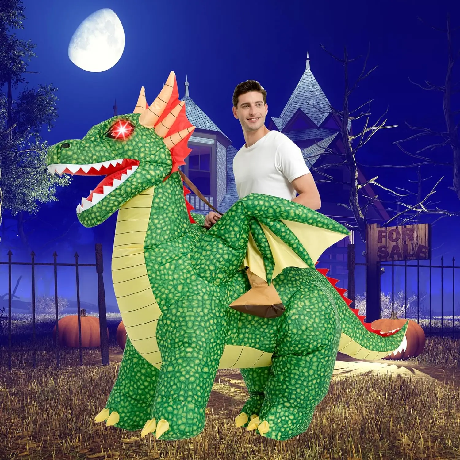 Inflatable Costume Adult,Blow Up LED Light Eyes Dragon Suit,Ride On Halloween Costumes for Men Women