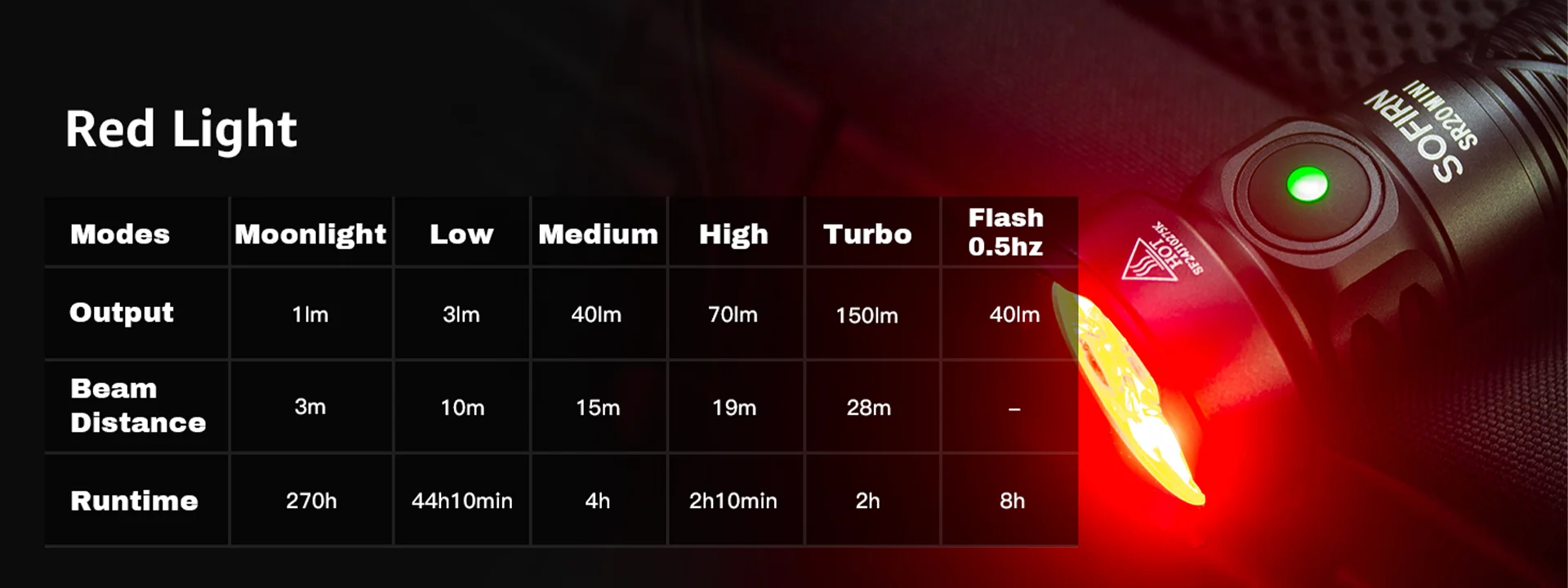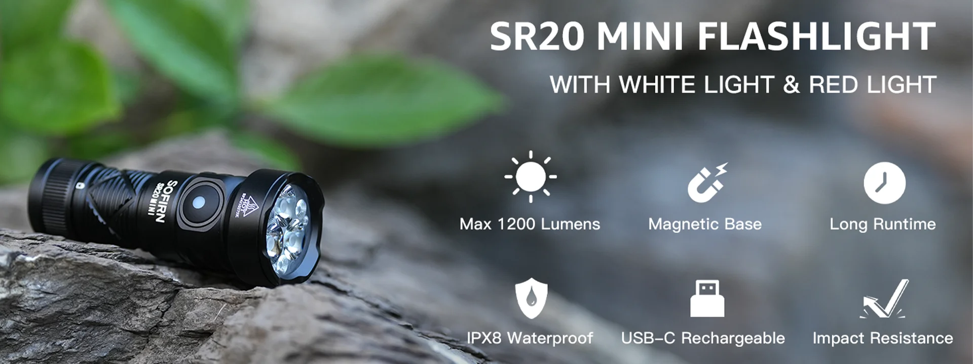 The SR20 MINI is a versatile flashlight equipped with both white and red lights. It features easy operation and is well-suited for everyday carry.Description