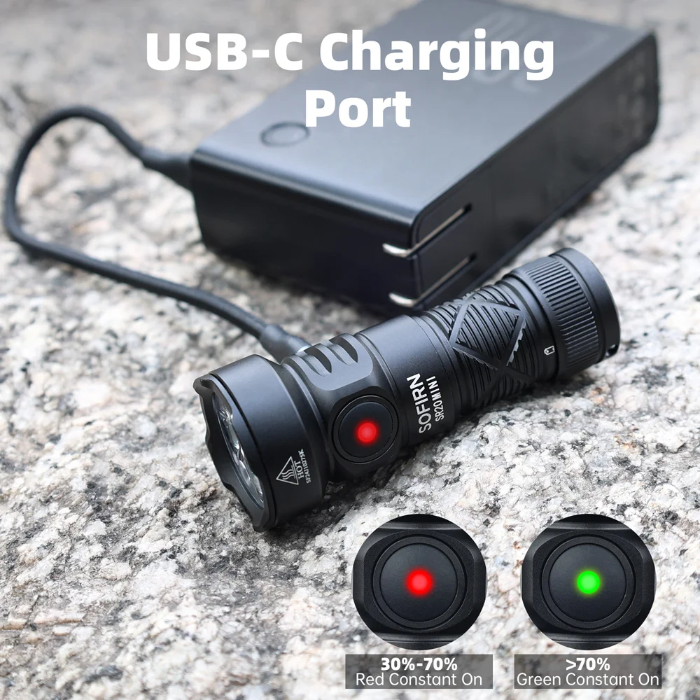 New Sofirn SR20 MINI 1200lm Flashlight 18350 USB C IP68 Waterproof with Red LED Key Light for Camping Emergency Situations