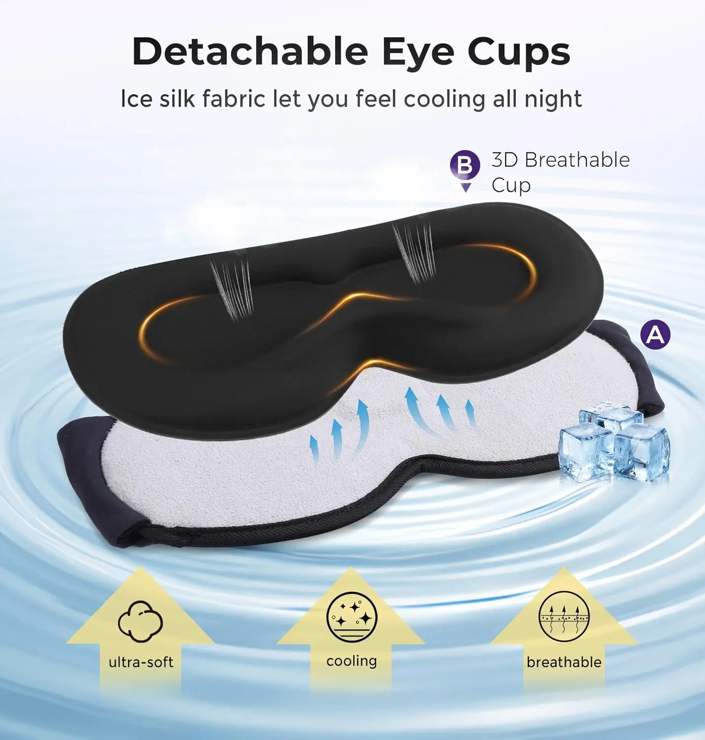 🌙Upgraded Detachable Cup Cover Design:Bluetooth eye mask features removable 3D eye cups that fit gently to block out all light and reduce pressure on your eyes. This thoughtful design lets you handle assembly and disassembly in seconds, so you can seamlessly enjoy both restful sleep and your favorite music effortlessly.