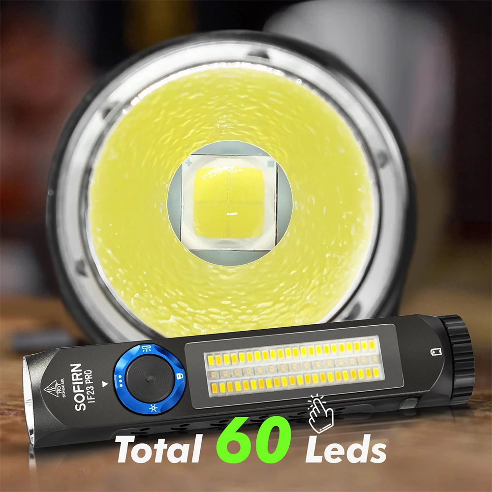 Sofirn IF23PRO's main LED emitter output max 5000 lumens and 226m beam distance, with a more focussed beam. the side COB light output max 750 lumens with a more flood type output. The side panel also has RGB LEDs integrated into the body. making it ideal for home, outdoor activities, photography, and etc