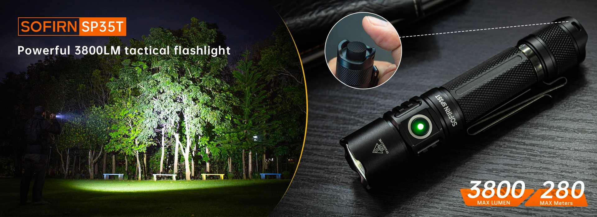 The SP35T is a powerful and versatile EDC flashlight. It utilizes a powerful XHP50.2 as well as a tactical dual-button interface to serve multiple applications both in conventional and professional home and outdoor scenarios. It is powered by one 21700 battery, can be recharged via USB-C and features a simple but elaborated dual mode user interface, offering both tactical modes and outdoor modes for your convenience. Moreover, SP35T offers advanced thermal regulation (ATR) for optimum output control.
