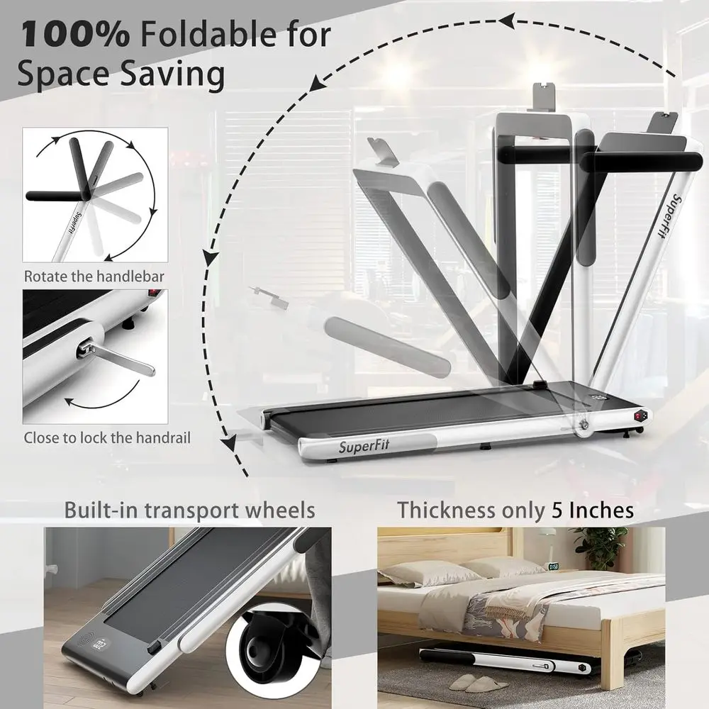 2-in-1 Under Desk Treadmill – This foldable treadmill offers two exercise modes: walking speed (0.6-2.5 mph) and running speed (0.6-7.5 mph). Its dual-purpose design makes it perfect for exercising while working or achieving daily fitness goals, suitable for both home and office use.