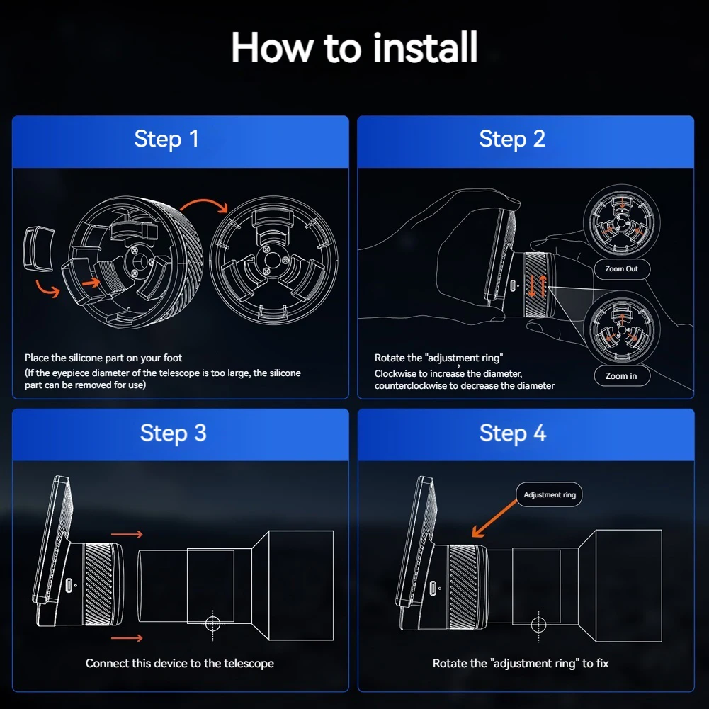 2.Standardized Interface: The digital eyepiece features a standardized telescope interface compatible with most 1.25-inch/2-inch eyepiece interfaces, ensuring easy connectivity with various astronomical telescopes.